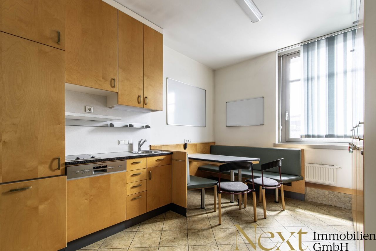Für das Wohl des Teams steht ein gemütlicher Aufenthaltsraum mit integrierter Teeküche bereit – ideal für Pausen und kurze Erholungsphasen.
