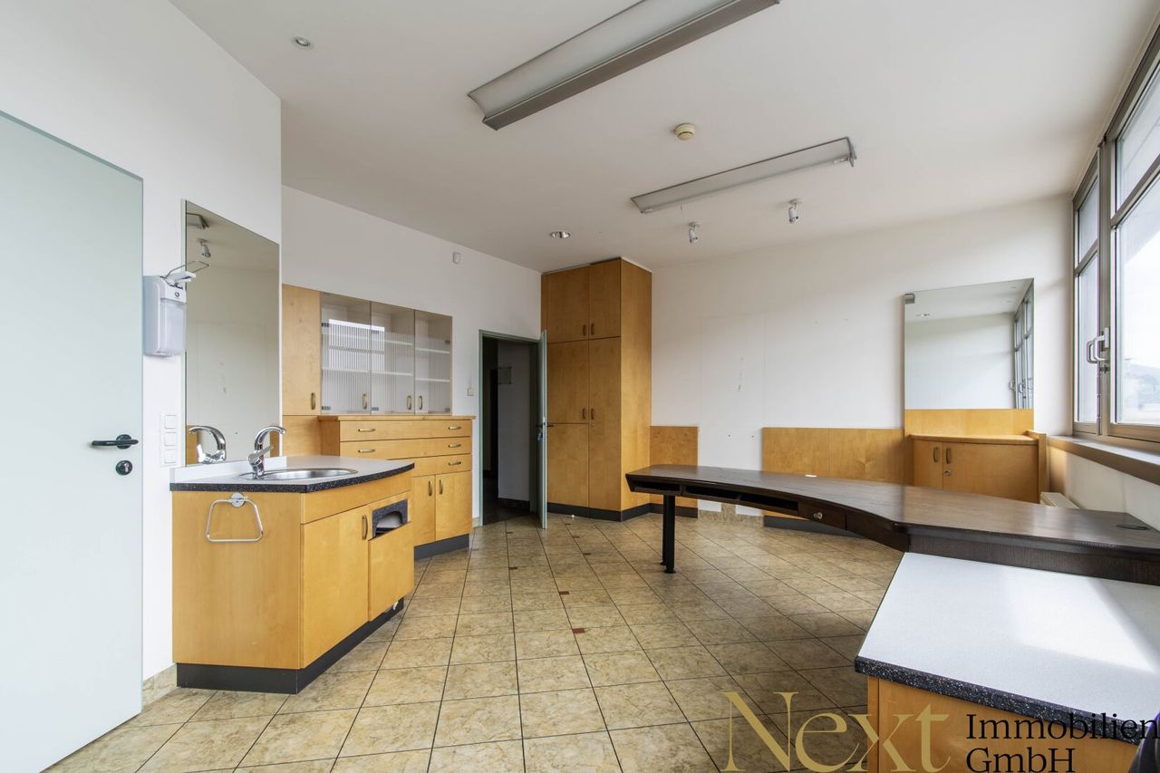 Das integrierte Labor ist funktional ausgestattet und ermöglicht effiziente Arbeitsabläufe direkt vor Ort.