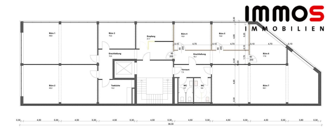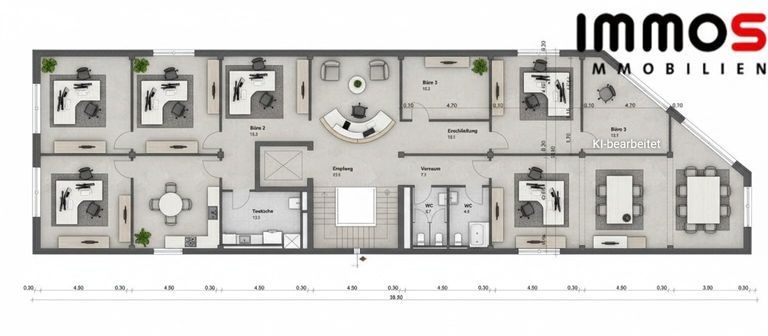Diese großzügige Immobilie in der begehrten 1. Etage bietet Ihnen eine beeindruckende Fläche von 333 m², die sowohl Funktionalität als auch Komfort vereint. Es eröffnen sich Ihnen hier die Möglichkeit, Ihre Geschäftsideen in einem professionellen Umfeld zum Blühen zu bringen.
