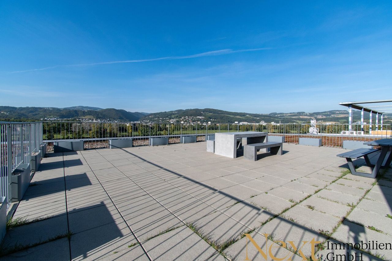 Ein Highlight ist die im 6. Obergeschoß befindliche Dachterrasse, welche einen perfekten Ausblick bietet und von allen Mietern genutzt werden kann. Die Terrasse ist bereits mit Outdoormöbel sowie einer Outdoorküche ausgestattet und ist sowohl für Besprechungen als auch kleine firmeninterne Veranstaltungen bestens geeignet.