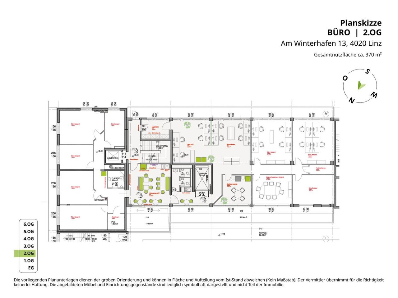 OFFICE - KLIMA - BALKON - PARKPLÄTZE QUICKFACTS Nutzfläche gesamt: ca. 370 m² Raumaufteilung: siehe Planskizze Stockwerk: 2.OG mit Lift WC Anlagen: 2 getrennt Nettomiete / m²: € 10,68 Bezugstermin: ab sofort nach Vereinbarung OBJEKTBESCHREIBUNG Zum sofortigen Bezug lädt diese ca. 370 m² große Bürofläche im 2. OG am Winterhafen 13. Ausgestattet mit Klimaanlage erstrecken sich auf einer Ebene 10 Büroräume verschiedener Größe, ein offener Empfangsbereich, Teeküche und Serverraum. Selbstverständlich sind getrennte Sanitäranlagen vorhanden. Für kurze Pausen lädt die vorgelagerte Allgemeinterrasse ein. Weiters besteht die Möglichkeit im Erdgeschoss des Hauses eine großzügige Geschäftsfläche mit Lagermöglichkeiten zusätzlich anzumieten. LAGE & VERKEHRSANBINDUNG...
