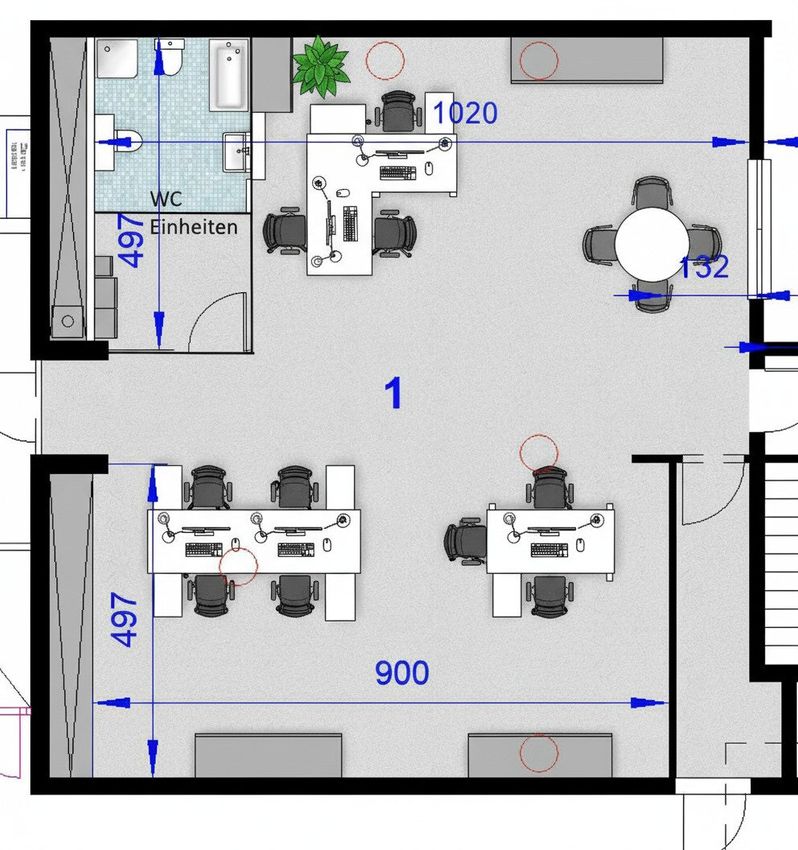 Ein weiteres Highlight sind die zwei WCs, die Ihnen und Ihren Mitarbeitern zusätzlichen Komfort bieten. Zudem sorgt die Fernwärme und Zentralheizung für ein angenehmes Raumklima, sodass Sie sich auf das Wesentliche konzentrieren können.