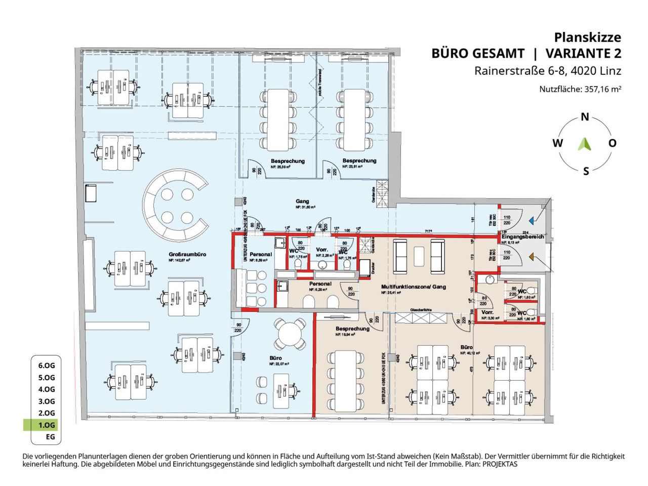 Nutzfläche: Büro 1 mit ca. 98,26 m² und Büro 2 mit ca. 258,90 m² oder gesamt ca. 358,17 m²