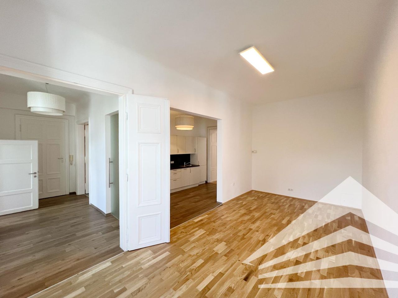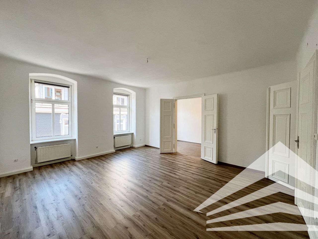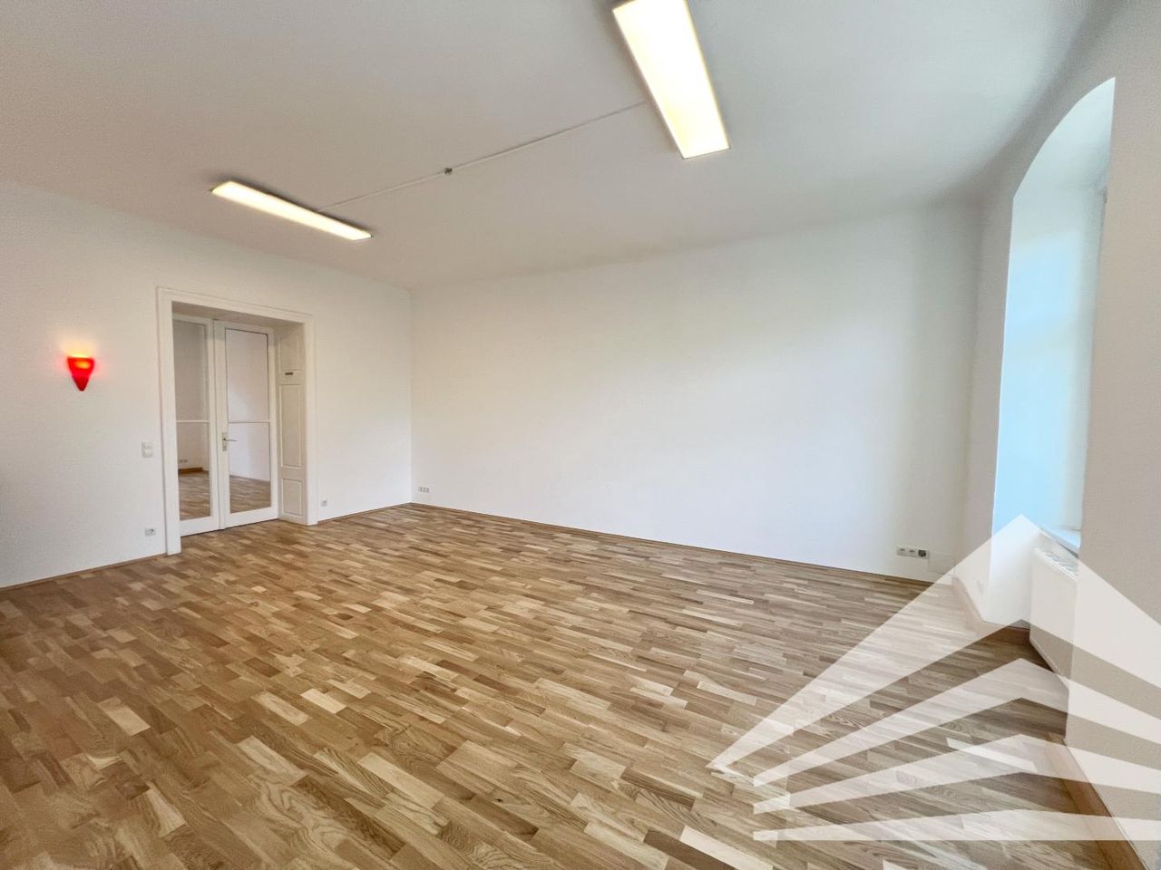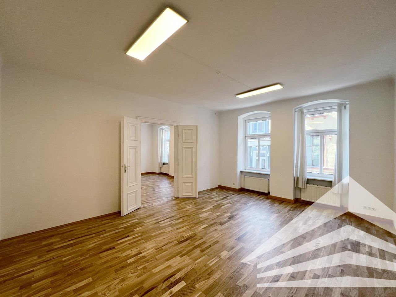 Diese frisch sanierte Altbaubürofläche besteht aus 2 Einheiten (ca. 62 m² und ca. 146 m²) und besticht durch einen schönen Parkettboden, einer Raumhöhe von mehr als 3 m, Doppelflügeltüren und eine bereits vorhandene Teeküche.