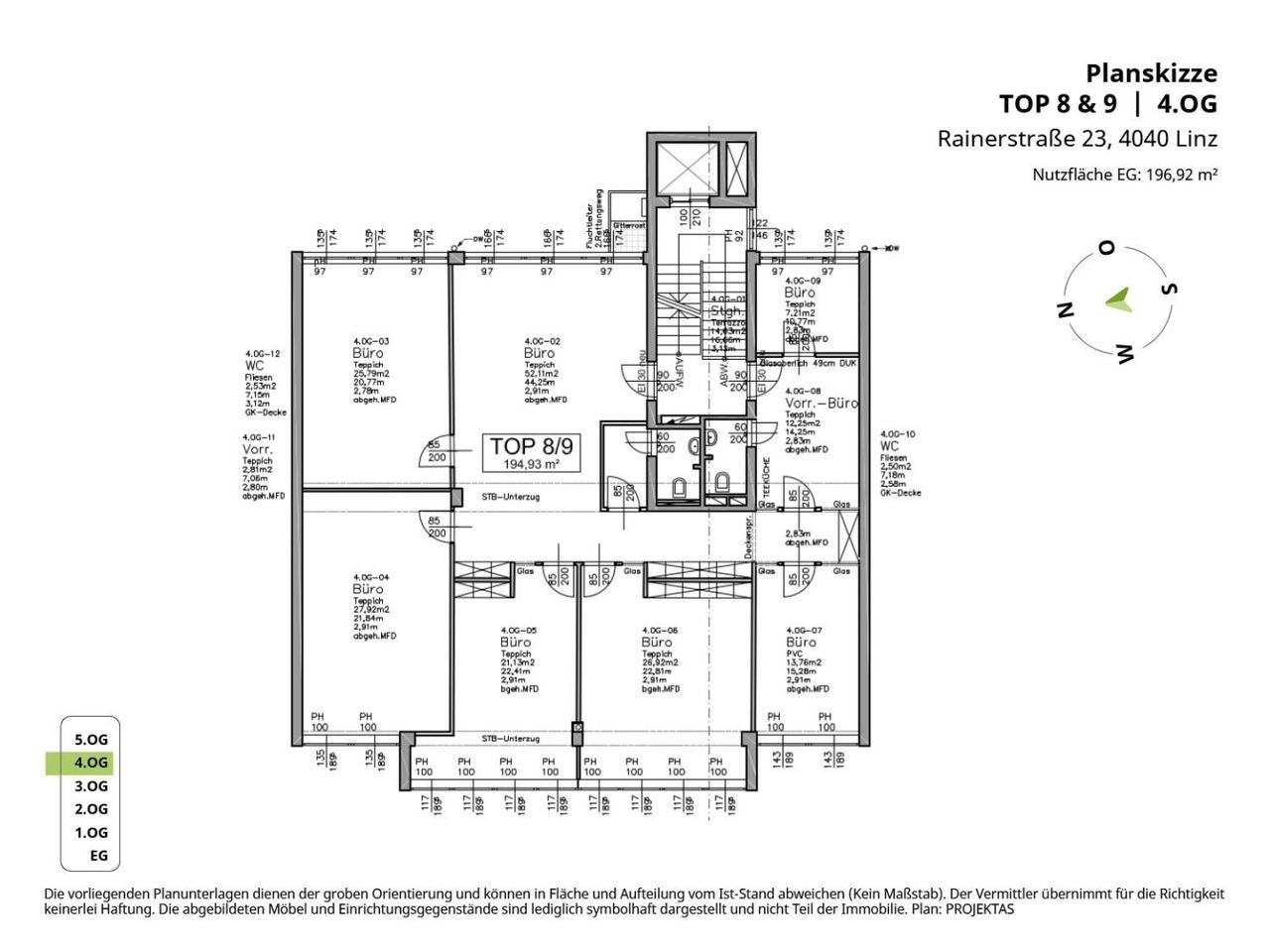 KLIMA - TEEKÜCHE - LIFT - PARKPLÄTZE QUICKFACTS Nutzfläche gesamt: ca. 196,92 m² Stockwerk: 4. OG Lift: vorhanden Teeküche: vorhanden Nettomiete / m²: € 12,00 Bezugstermin: nach Vereinbarung OBJEKTBESCHREIBUNG Diese gut ausgestatte und neu sanierte Bürofläche mit ca. 196 m² verfügt über einen offenen Empfangsbereich, 4 Büroräume verschiedener Größen, Besprechungsraum, Sozialraum, Teeküche sowie getrennte Sanitäranlagen. Die Ausstattung beinhaltet einen neuen Teppichboden, abgehängte Decke, Klimasplitgeräte und öffenbare Fenster. Ein perfekter Standort in Zentrumsnähe! LAGE & VERKEHRSANBINDUNG Das Objekt im 4. Stock des Gebäudes in der Rainerstrasse liegt nur wengie Gehminuten vom Hauptbahnhof entfernt. Die Haltestelle Goethekreuzung bietet öffentliche Bus- und Straßenbahnverbindungen....