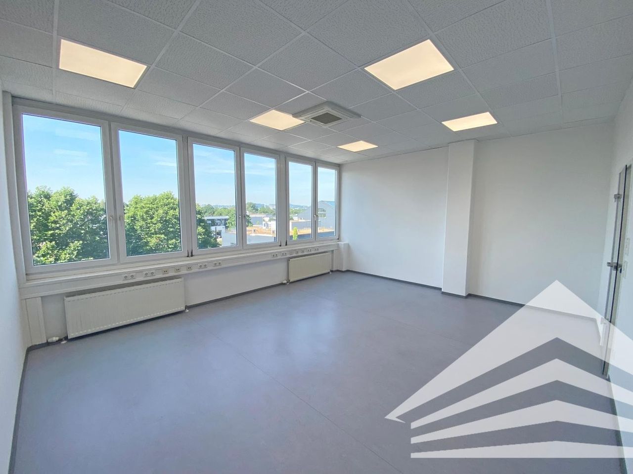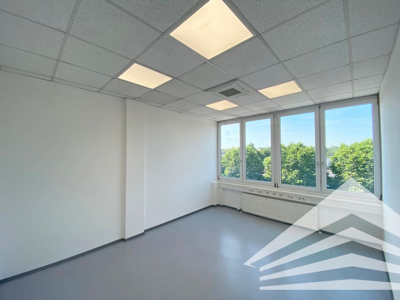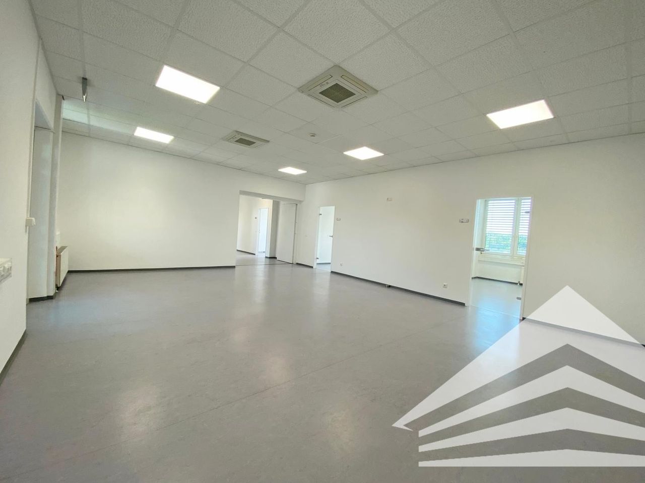 Selbstverständlich sind ein Empfangsbereich, vorbereitete Teeküche und getrennte Sanitärräume vorhanden. Die Ausstattung beinhaltet einen strapazierfähigen PVC Bodenbelag, abgehängte Decke mit Grundbeleuchtung, individuelle Klimatisierung jedes Raumes, Kabelkanäle mit Grundverkabelung.