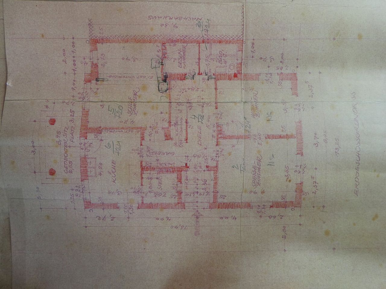 ERDGESCHOSS: Windfang, Vorraum, 3 Zimmer, Raum für Küche, Badezimmer mit WC;