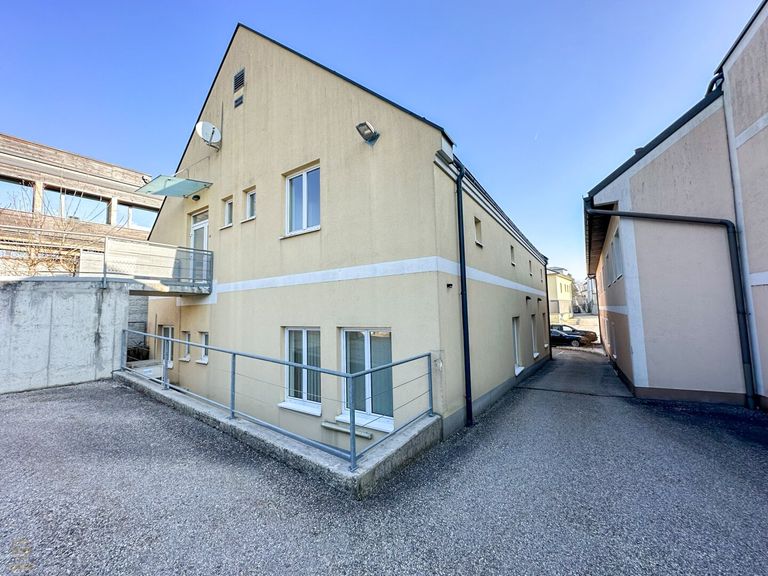 Die Gewerbefläche liegt im ersten Obergeschoß und überzeugt mit ihrem barrierefreien Aufgang, direkt neben den vor Ort vorhandenen Parkplätzen.