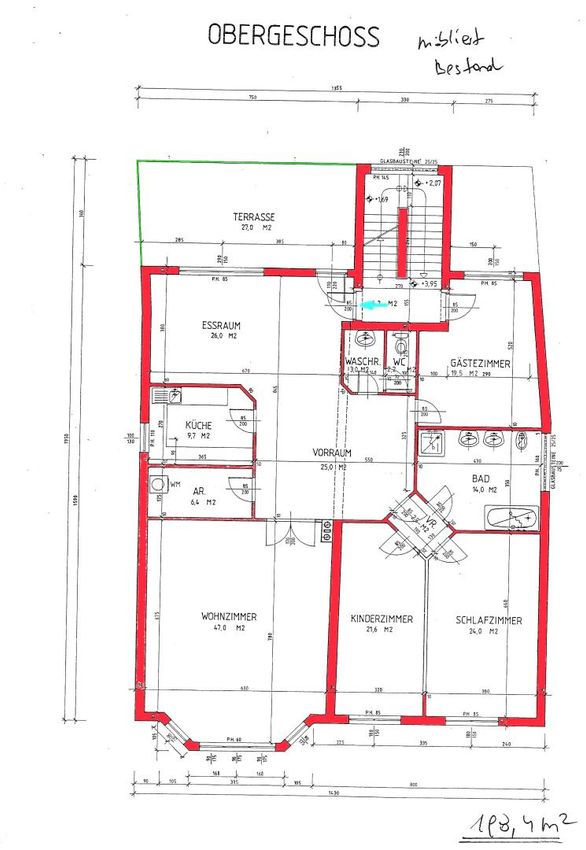 Derzeit wird dieses Büro als Wohnung genutzt, 5 Zimmer + 2 Terrassen hofseitig.