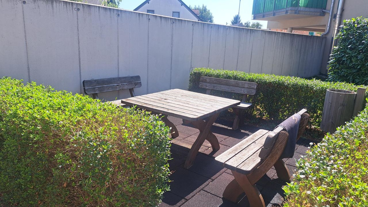 Der kleine grüne Garten mit Sitzmöglichkeit kann mitbenutzt werden.