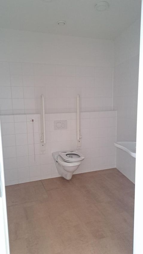Ein großzügiger Eingangs-, Empfangs- und Wartebereich, eine Teeküche sowie ein behindertengerechtes WC. Zusätzlich stehen ein weiterer Raum und ein kleines WC mit Waschbecken zur Verfügung.