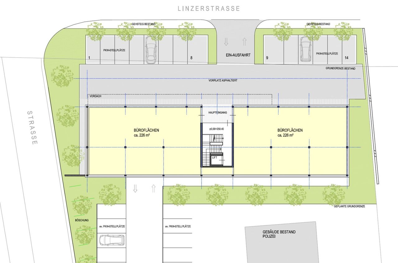 Parkplätze direkt vor der Tür + Zufahrt für Kunden und Lieferanten
