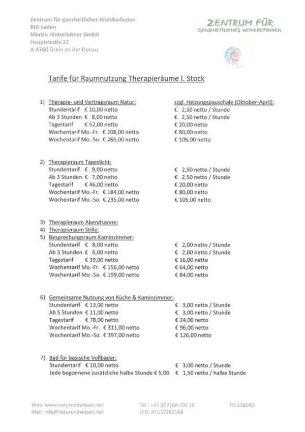 Im Zentrum für ganzheitliches Wohlbefinden neben dem 20er Hof in Grein werden über dem BIO Laden verschiedene Räume stundeweise oder tageweise zur Vermietung angeboten. Die Räume sind voll möbliert und können für Therapie, Massagen, Besprechungen, Vorträge oder auch für Kochunterrichte oder für Heilbäder verwendet werden.