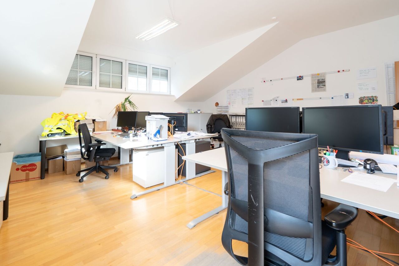 In Halle 1 eines gepflegten Gewerbeobjekts in Pinsdorf steht ein großzügiges Büro mit einer Fläche von ca. 101,66 m² im 1. Obergeschoss zur Vermietung. Die Einheit verfügt über zwei separate Büroräume, eine voll ausgestattete Küche sowie ein eigenes Badezimmer mit Dusche und Badewanne. Diese Ausstattung bietet nicht nur funktionale Arbeitsbedingungen, sondern auch zusätzlichen Komfort im Arbeitsalltag. Die hellen, gut geschnittenen Räume eignen sich ideal für Unternehmen, die Wert auf eine angenehme und zugleich effiziente Arbeitsumgebung legen. Die interne Raumaufteilung erlaubt eine flexible Nutzung, etwa als Einzel- oder Teamarbeitsplätze, Besprechungszimmer...