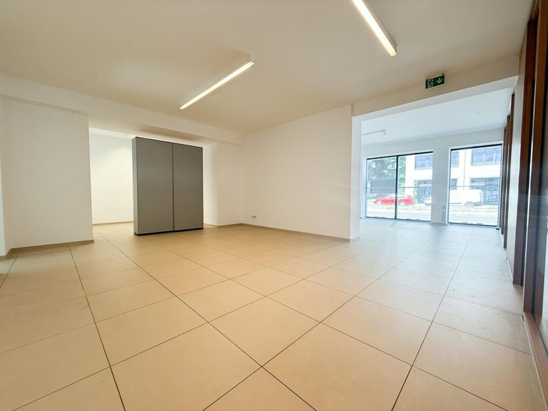 Die breite Front an der vielbefahrenen Straße bietet hervorragende Werbefläche. Das Objekt selber ist offen gestaltet, durch Einbau von 3 Trennwänden wurden 2 Büros und eine Besprechungsraum geschaffen. Im hinteren Bereich befinden sich ein weiterer Büroraum sowie eine Küche mit Sanitärbereich. Beide Räume haben Türen nach außen auf eine ca. 25m² große Terrasse.
