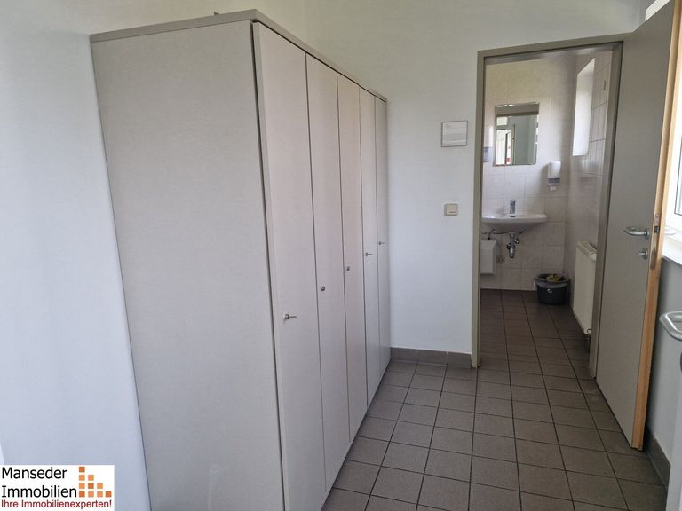 Ein Besprechungsraum und ein Sozialraum mit Küchenblock runden die geräumige Nutzungsmöglichkeit ab. Die (für Damen und Herren) getrennten Toilettenanlagen sind über einen eigenen Vorraum/Gang erreichbar, welche auch Abstellflächen für...