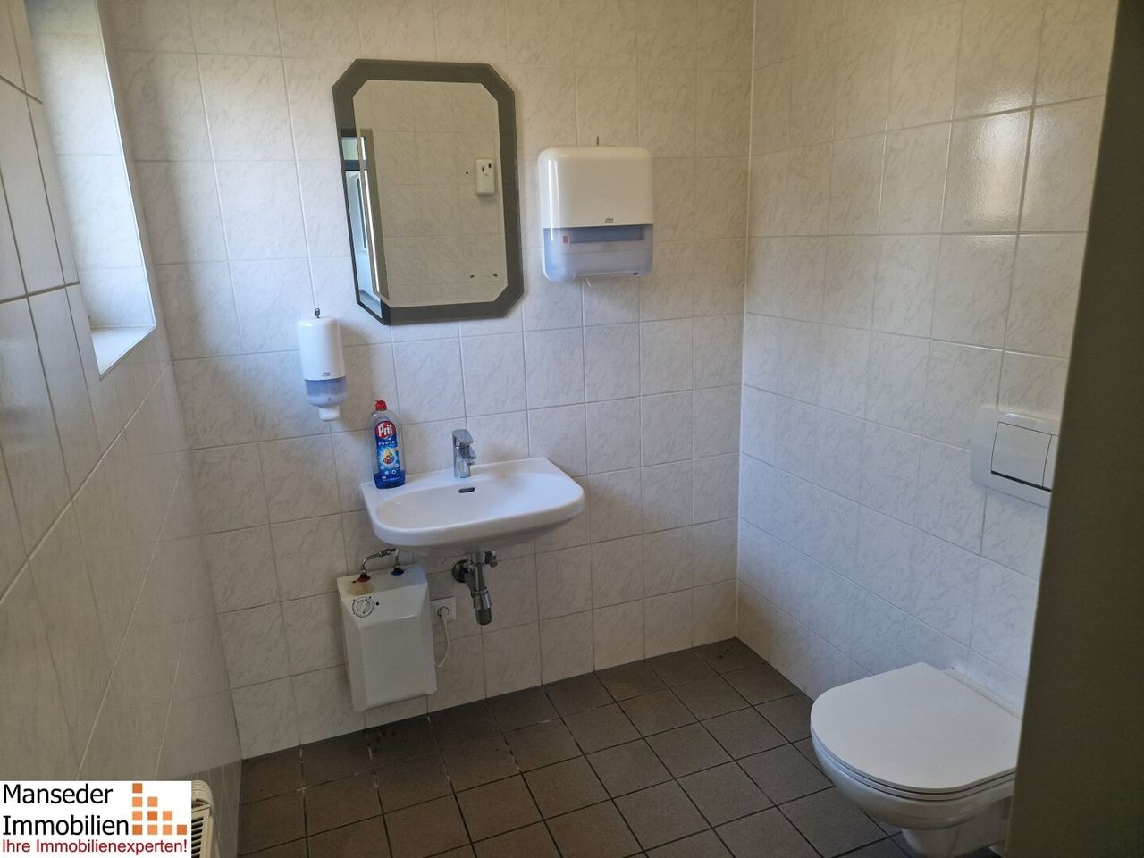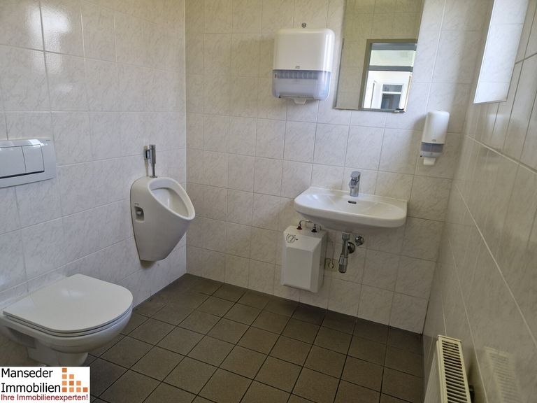 Ein Besprechungsraum und ein Sozialraum mit Küchenblock runden die geräumige Nutzungsmöglichkeit ab. Die (für Damen und Herren) getrennten Toilettenanlagen sind über einen eigenen Vorraum/Gang erreichbar, welche auch Abstellflächen für Anlieferungen bietet.