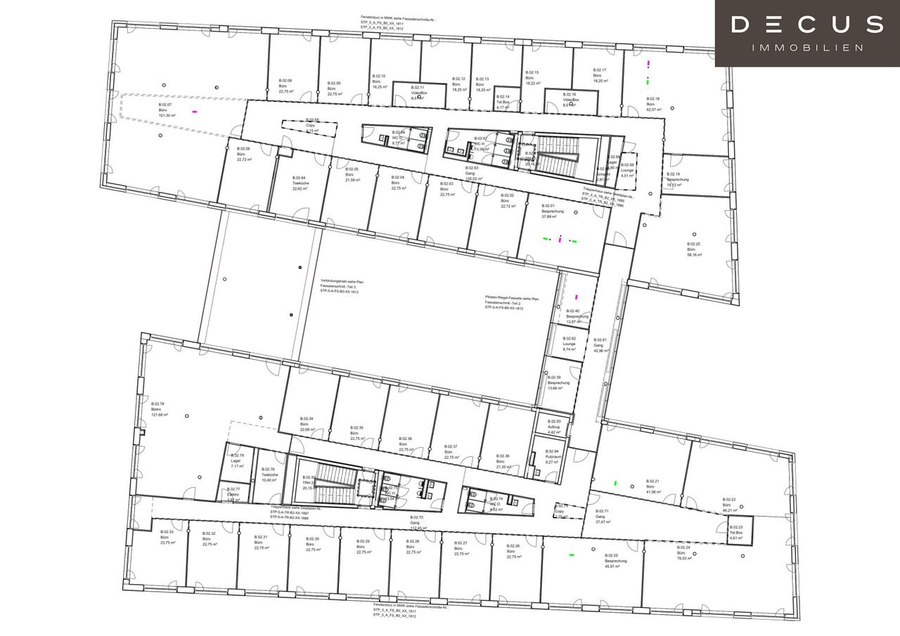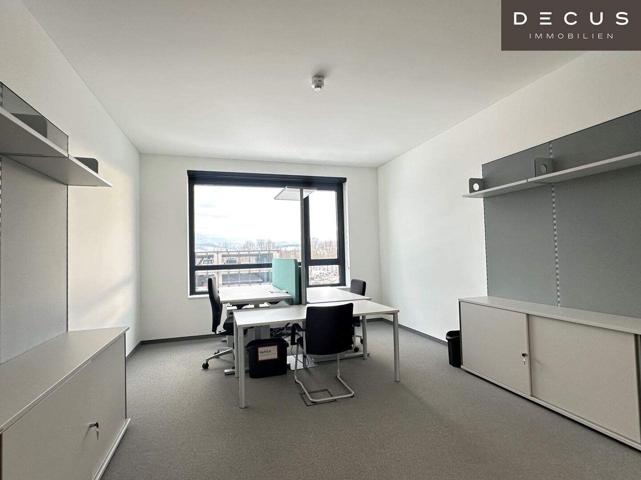 Die Büroflächen befinden sich im 2. Obergeschoss und umfassen eine Fläche von ca. 1.700 m², welche auch in der Hälfte geteilt werden könnten. Bei einer Teilung würden somit zwei Büroeinheiten mit rund 850 m² zur Verfügung stehen. Auch eine Terrasse ist vorhanden. In einem Teilbereich der Fläche ist derzeit eine Kantine eingerichtet.