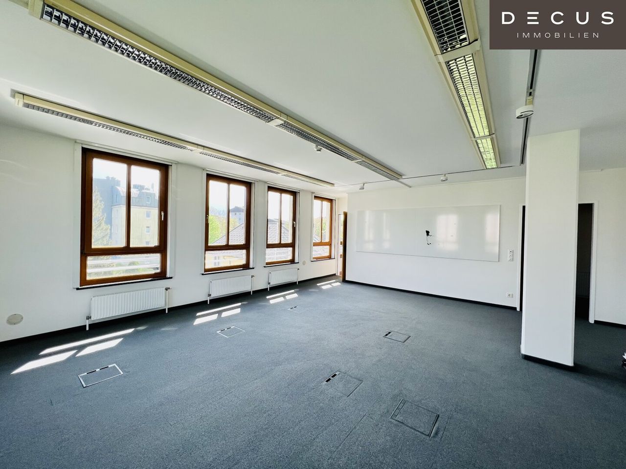 - 1.OG - ca. 234,77 m² (7 zentral begehbare Räume, Sanitäreinheiten, Wintergarten, Terrasse, eingerichtete Teeküche, Archiv, Serverraum gekühlt, 2 getrennte Sanitäreinheiten) - ab Jänner 2027 verfügbar