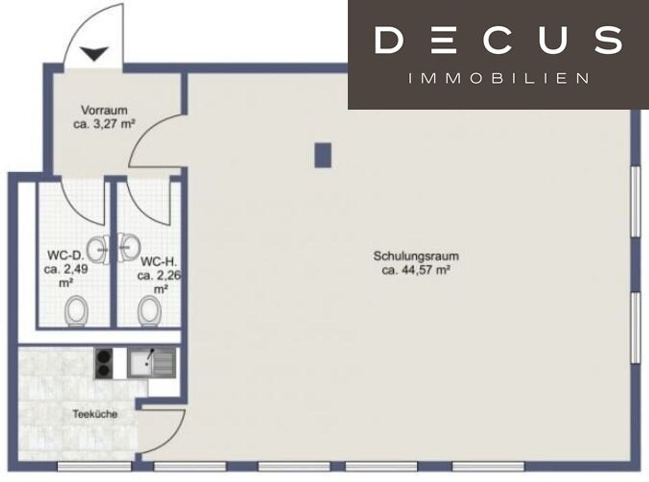 - 2.OG - ca. 56,16 m² (1 großer Raum, Vorraum, Sanitäreinheit, eingerichtete Teeküche) - sofort verfügbar