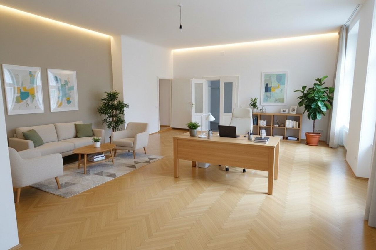 HINWEIS: Die Einrichtung der Bilder wurde generiert, die Büroflächen sind ohne Einrichtung und Küche zu mieten!