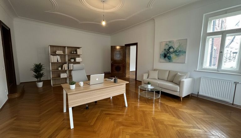 HINWEIS: Die Einrichtung der Bilder wurde generiert, die Büroflächen sind ohne Einrichtung und Küche zu mieten!