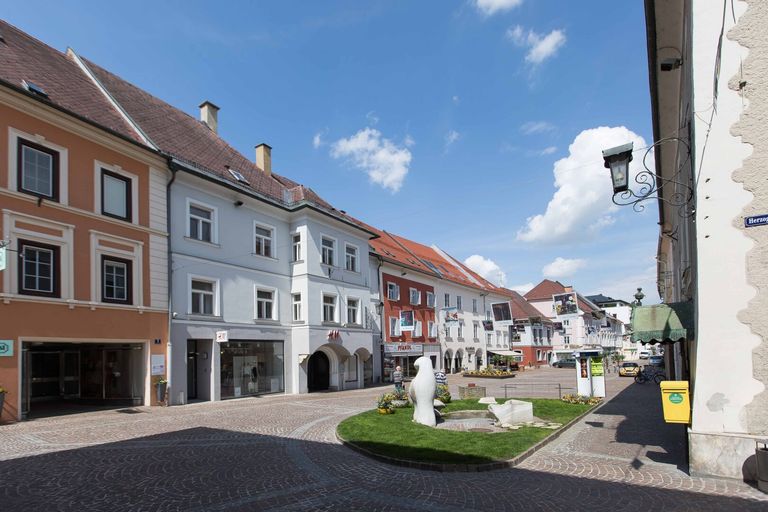 Mit einer Gesamtnutzfläche von rd. 204,26 m2 (Wohnfläche rd. 182,48 m2, zzgl. zwei getrennte Abstellräume/Lager mit je rd. 11 m2) in bester Altstadtlage von St. Veit an der Glan, direkt am Unteren Platz.