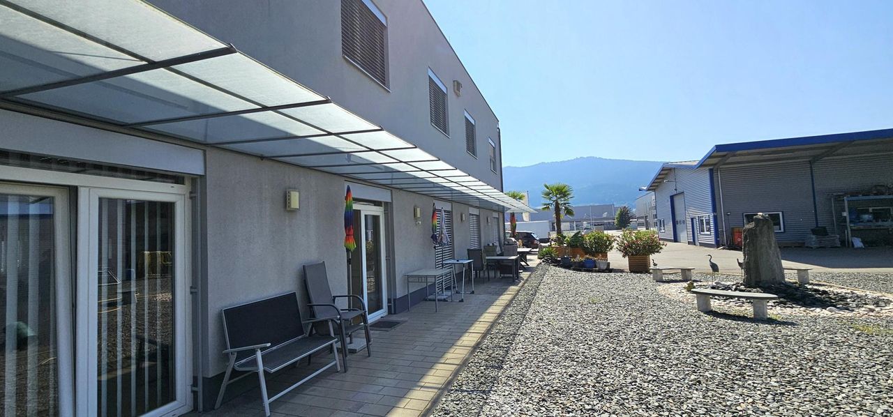 Die großzügige Terrasse im Erdgeschoss bietet zusätzlichen Raum für Meetings, Pausen oder kreatives Arbeiten im Freien.