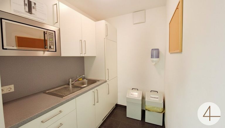 Eine integrierte Teeküche sorgt für kurze Wege und ermöglicht es den Mitarbeitern, Pausen angenehm zu gestalten.