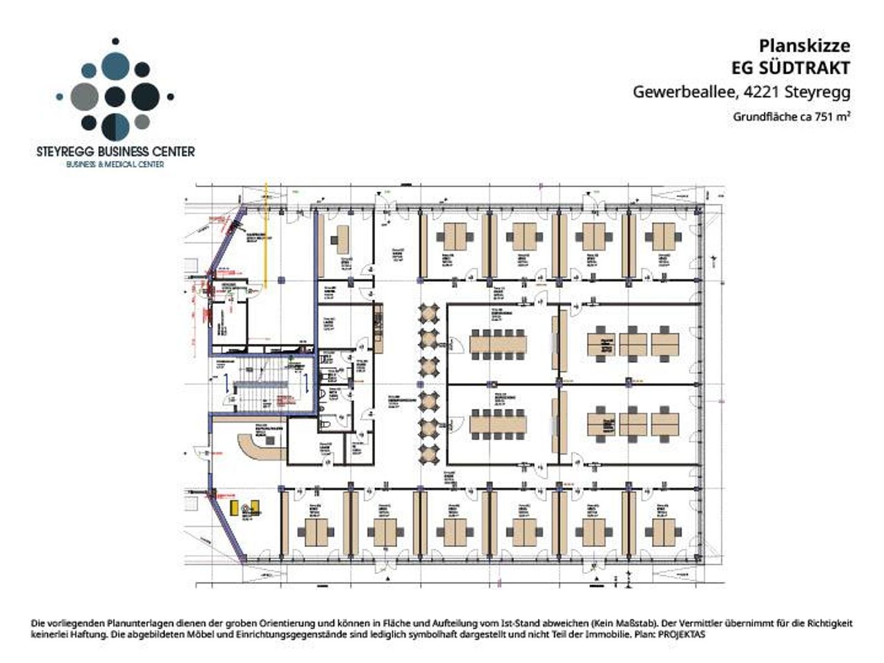 EXKLUSIV - HOCHWERTIG - PARKPLÄTZE - DACHTERRASSE QUICKFACTS Nutzfläche gesamt: ca. 751 m² (weitere Optionen ab ca. 375 m² möglich) Raumaufteilung: laut Planskizze, veränderbar Stockwerk: EG Parkplätze: Freistellparkplätze vor dem Gebäude anmietbar WC Anlagen: getrennt Nettomiete / m²: ab € 12,00 Bezugstermin: nach Vereinbarung ab 01.01.2026 OBJEKTBESCHREIBUNG DIE erste Adresse für Ihr erfolgreiches Business in Steyregg nur wenige Minuten von Linz entfernt! Diese attraktive Bürofläche mit ca. 750 m² Nutzfläche im EG bietet eine durchdachte Raumplanung bestehend aus hellen, für 2 Personen ausgelegte Büroräume entlang des Fensterbandes, zentral angelegten Besprechungsräumen bzw. 6er Büro''s und einer offenen Begegnungszone. Der Grundriss ist...