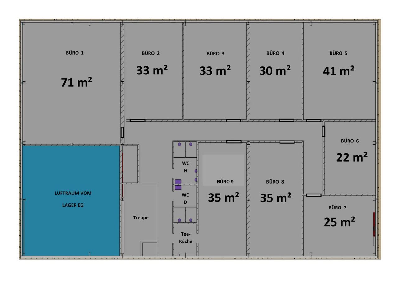Die 35m2 große Bürofläche befindet sich in der 1. Etage eines Bürogebäudes im "Gewerbezentrum" Regau und ist barrierefrei zugänglich.