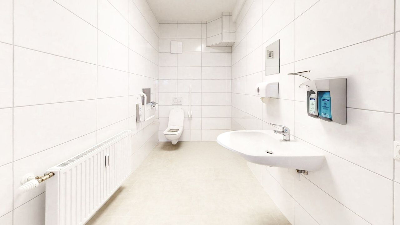 getrennte Sanitäreinheiten für Patient:innen und Personal, inkl. barrierefreiem, behindertengerechtem WC