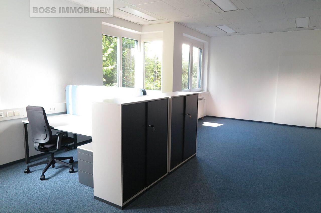 Büro Das östlich ausgerichtete Büro mit ca. 45m² Nutzfläche ist bereit für ihre neue Belebung und kann ab sofort Ihren Bedürfnissen angepasst werden. Der helle Büroraum ist mit Teppichboden ausgestattet. Große Deckenlampen erhellen Ihren Arbeitsplatz an bedeckten Tagen und auch für die EDV-Verkabelung ist schon gesorgt.