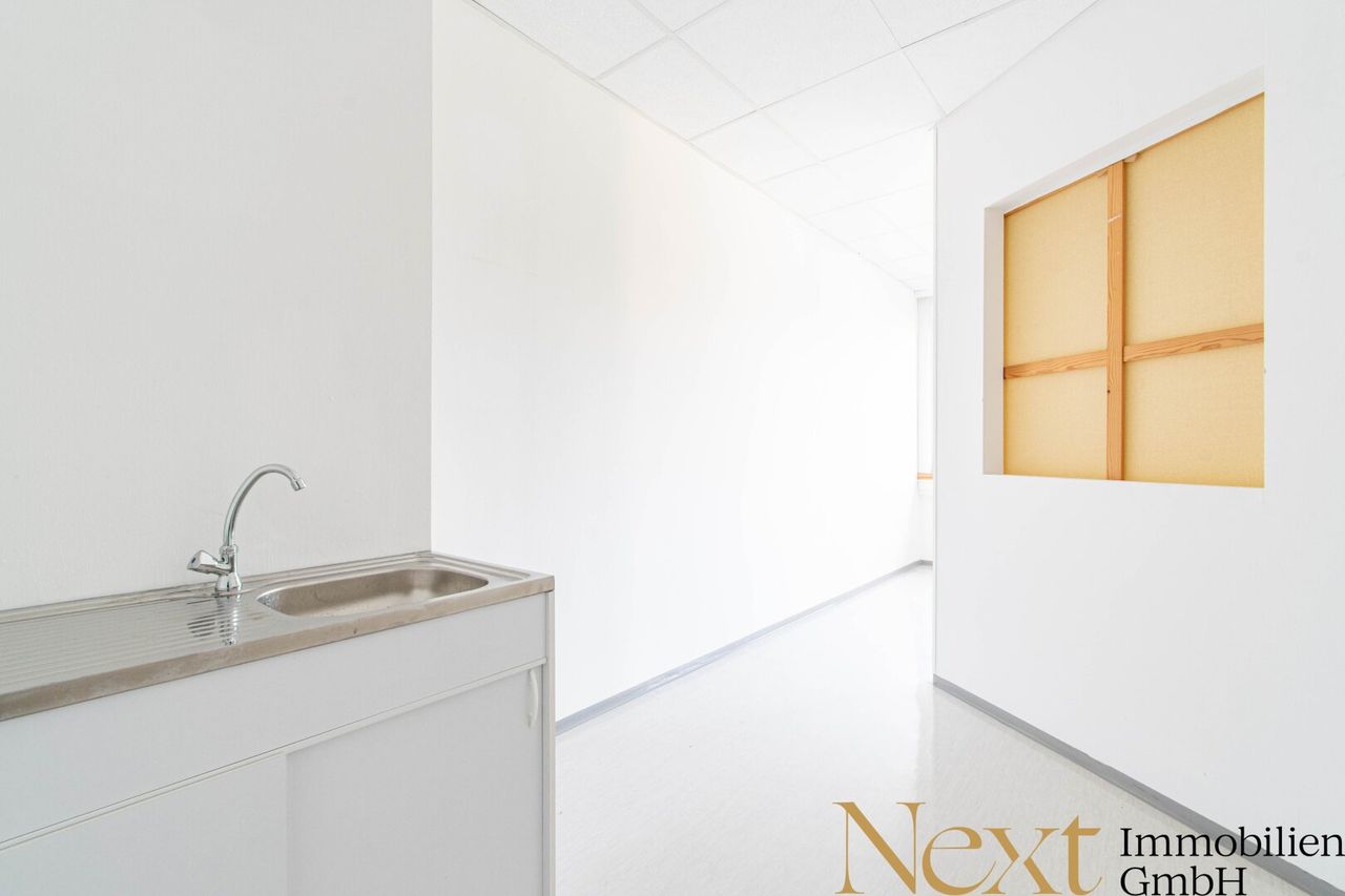 Die ansprechende ca. 90,55m² große Bürofläche zeichnet sich durch eine ideale Raumaufteilung mit einem Großraum- und einem Ein- bzw. Zweimannbüro sowie einer Küchennische aus.