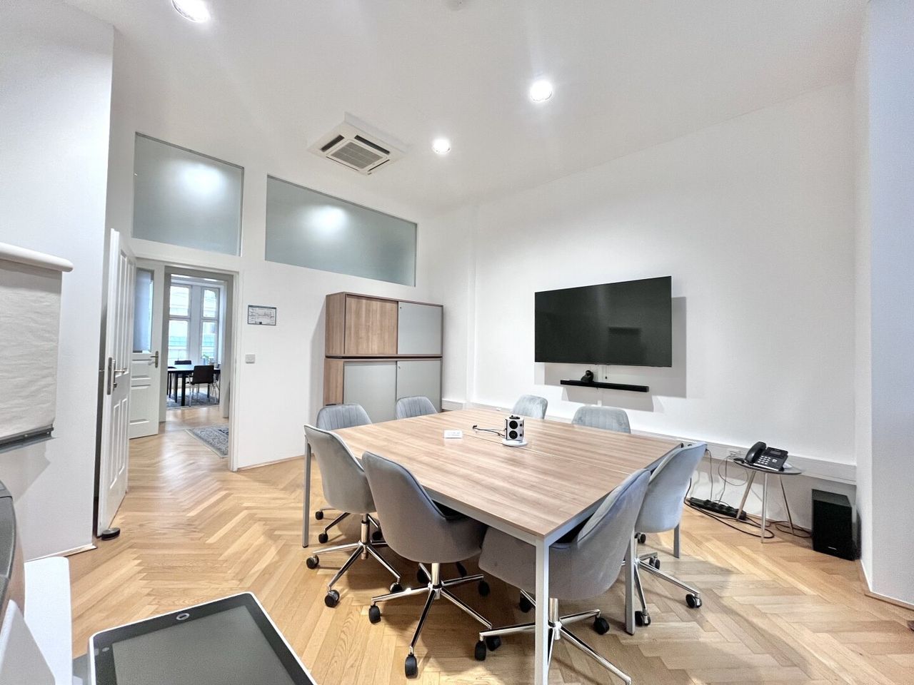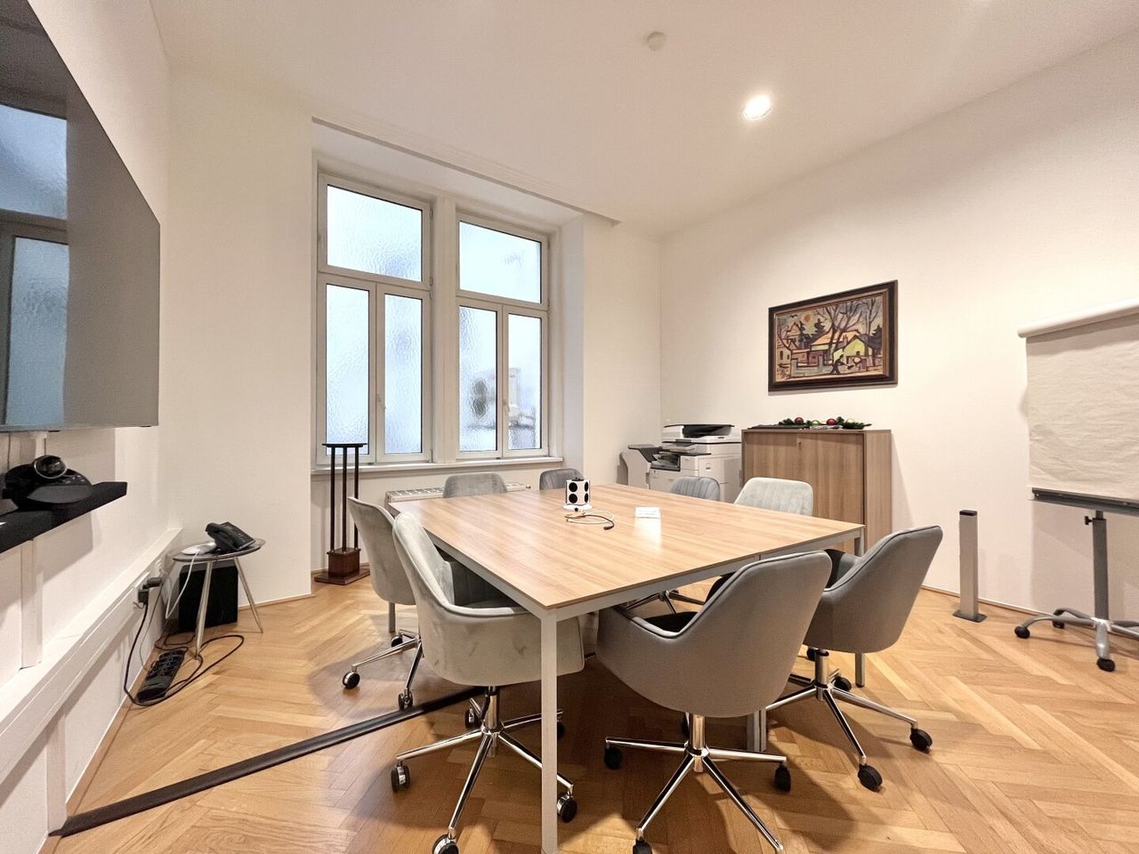 Das Büro bietet ausreichend Platz für Beratungs- oder Klientengespräche. Die moderne, gepflegte Umgebung trägt zu einem professionellen Auftreten gegenüber Kund*innen bei.