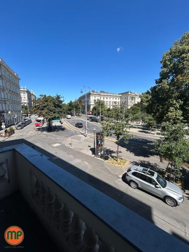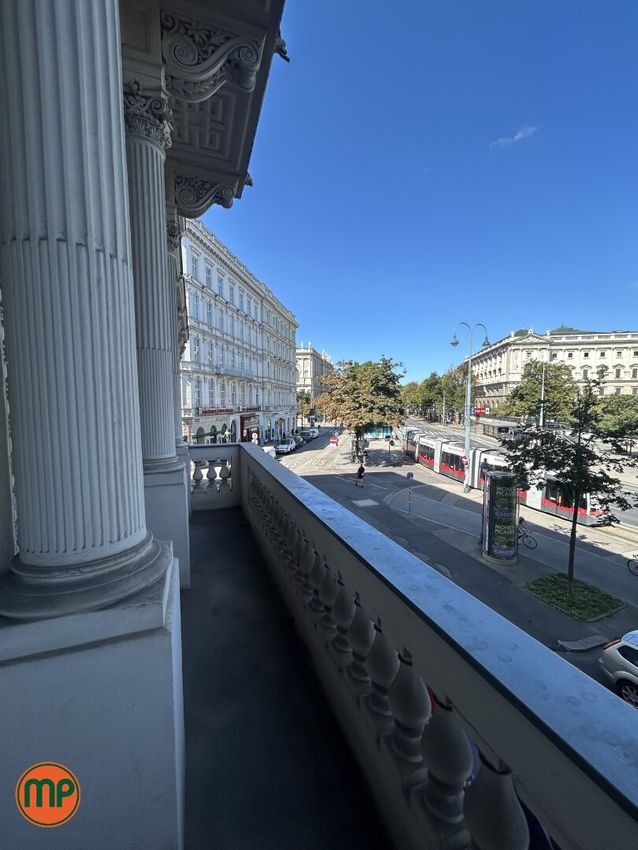 Ergänzt wird das Raumangebot durch zwei separate WCs, eine Dusche sowie eine voll ausgestattete Küche – ideal für Pausen oder kleinere Meetings im informellen Rahmen. Ein weiteres Highlight ist der repräsentative Balkon mit Blick auf den Ring, der diesem Standort eine ganz besondere Exklusivität verleiht.