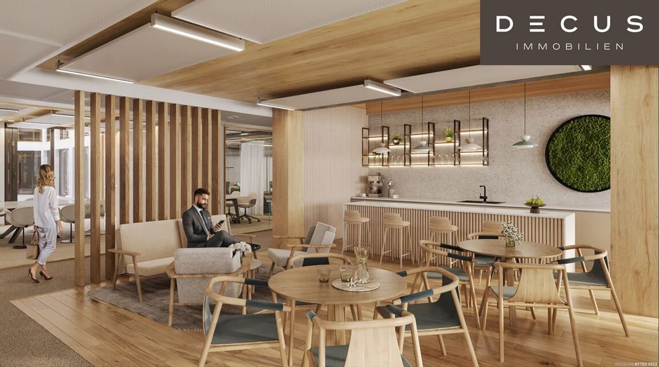 Hohe Decken, natürliche Holzoberflächen und eine flexible Raumeinteilung schaffen die besten Voraussetzungen für ein individuelles Bürokonzept. Moderne Heiz-/Kühlsegel-Technologie sorgt für größtmögliche thermische Behaglichkeit, Stehleuchten mit direktem bzw. indirektem Lichtanteil garantieren zu jeder Tageszeit die richtige Beleuchtung.