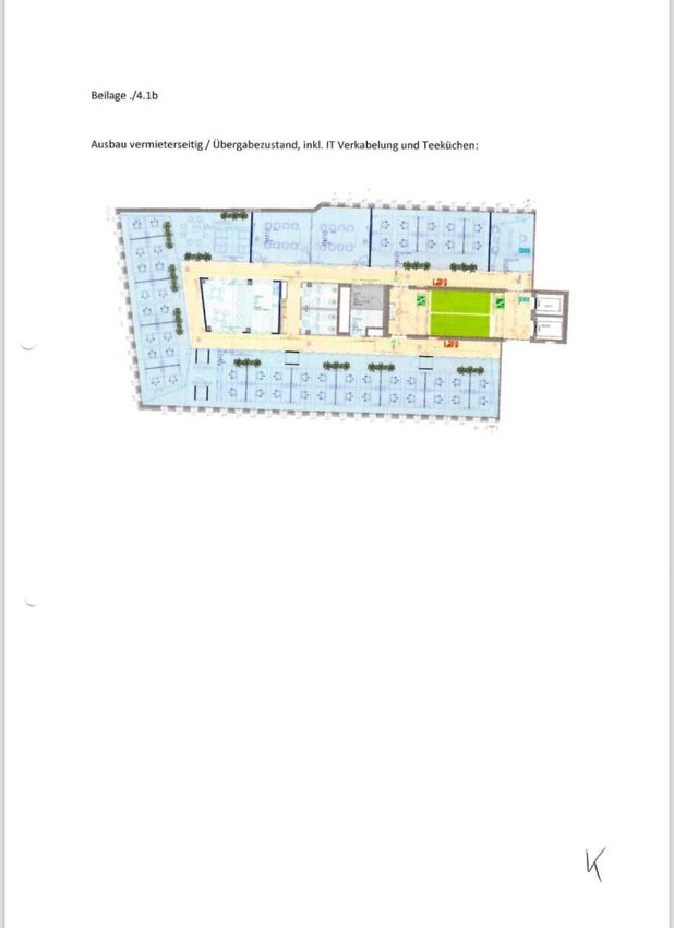 - Es ist ein Garagenplatz vorhanden. Der Mietvertrag hierfür ist separat vom Bürovertrag und hat eine Kündigungsfrist von drei Monaten.