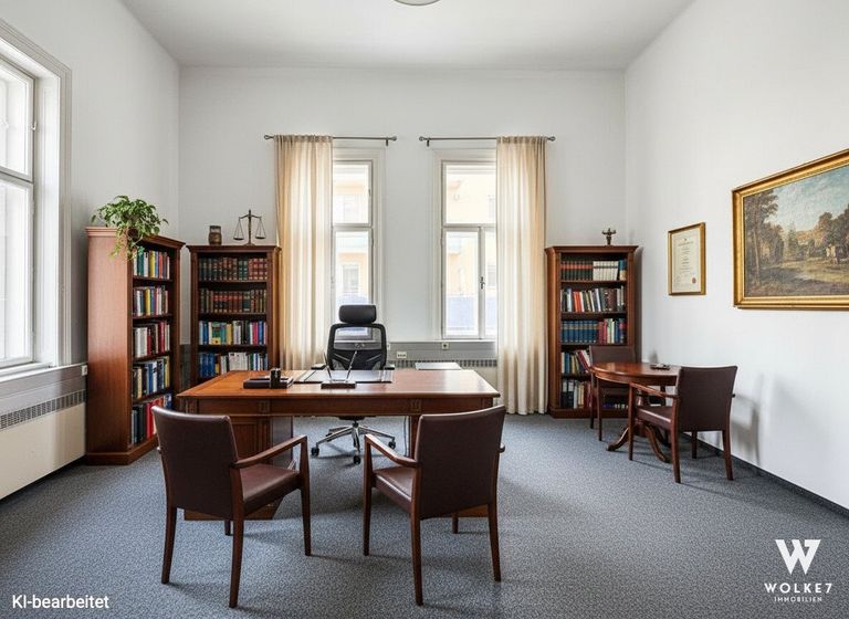 Die Bürofläche umfasst 6 Arbeitszimmer und bietet damit flexible Nutzungsmöglichkeiten für unterschiedlichste Branchen – ob Kanzlei, Agentur, Consulting-Unternehmen oder Praxis.