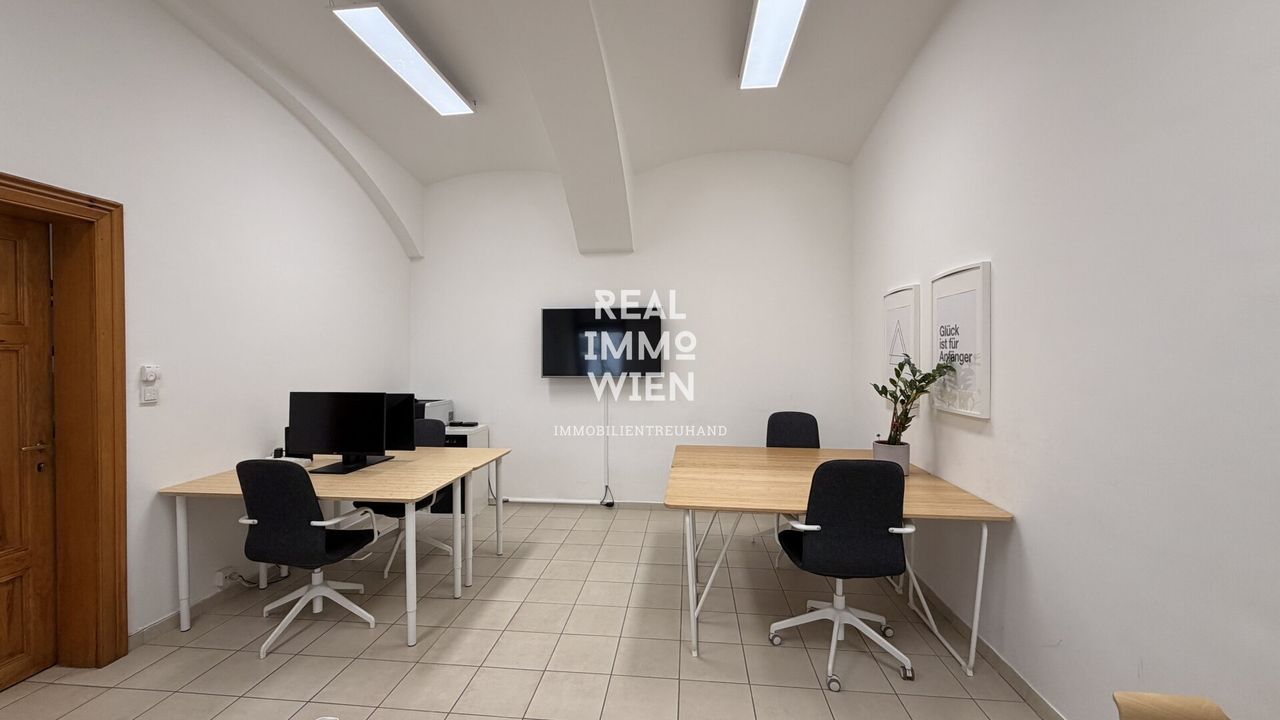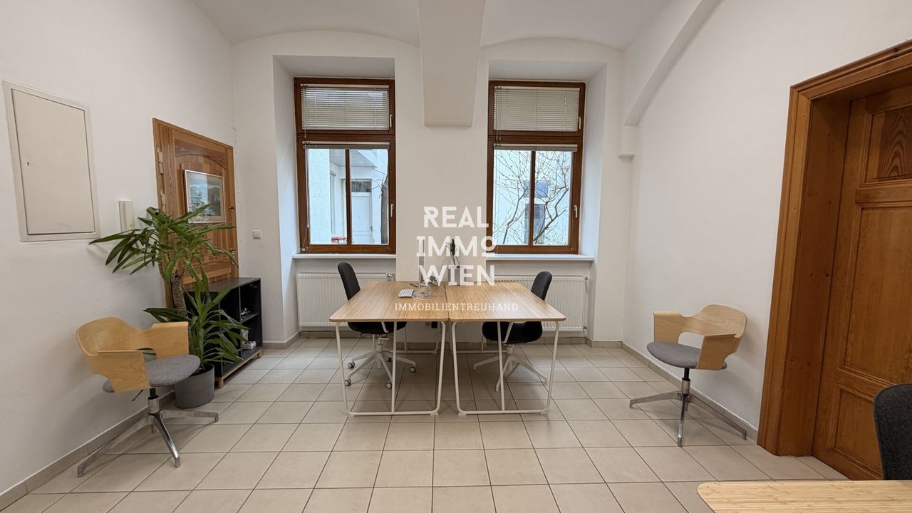 Die rund 35 m² große Büro- bzw. Praxisfläche befindet sich im Erdgeschoss eines gepflegten Innenhofgebäudes in 1030 Wien und bietet einen hellen, großzügigen Arbeitsraum mit Platz für bis zu sechs Arbeitsplätze. Hochwertiger Fliesenboden, eine moderne Einbauküche sowie ein Badezimmer mit Fenster und Dusche sorgen für hohen Komfort. Beheizt wird die Einheit über eine effiziente Gas‑Etagenheizung.