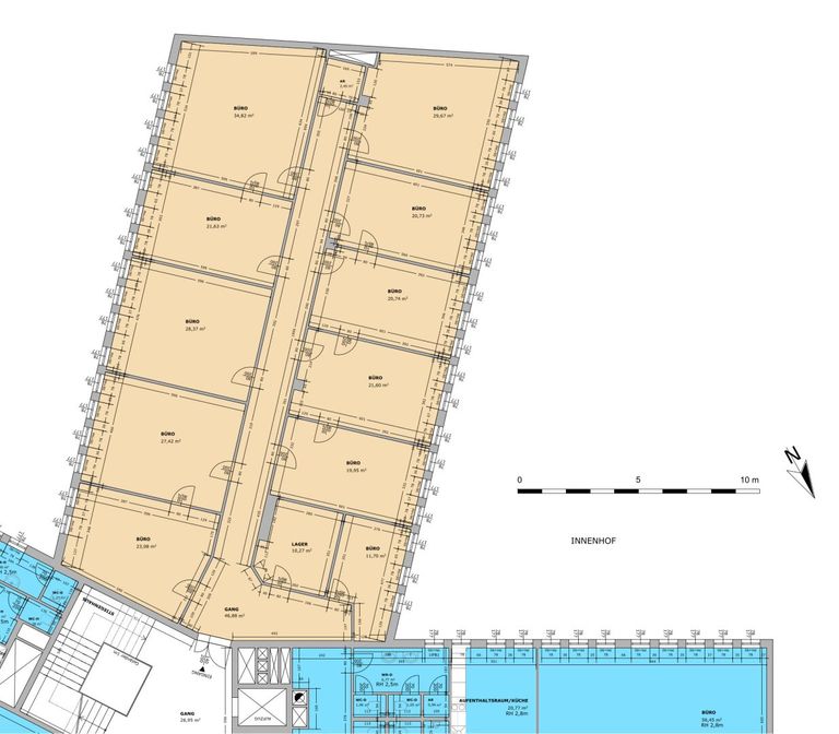 - aktuell 11 Büroräume (getrennt begehbar)