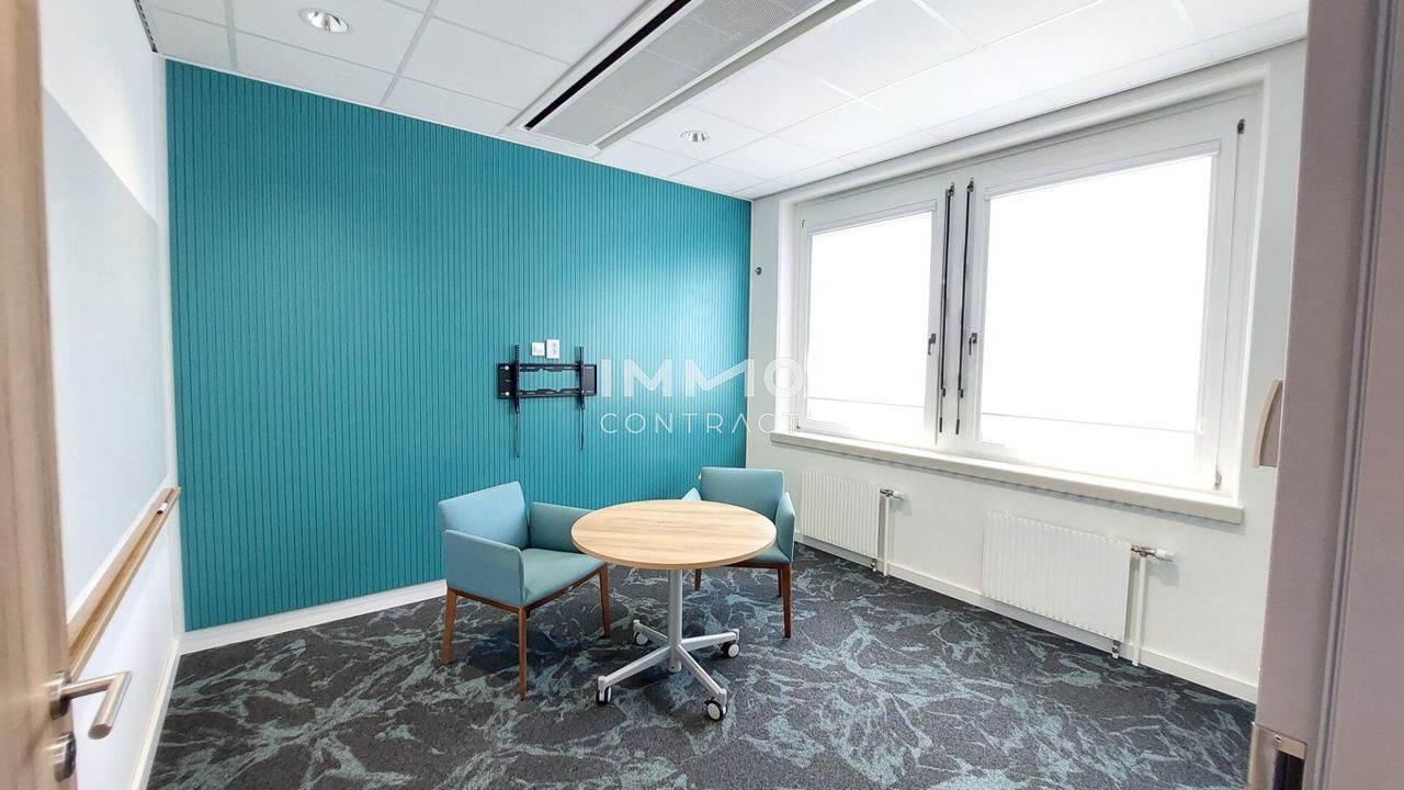 Auf 500 m² finden sich zahlreiche kleine Besprechungsräume für bspw. Online-Meetings oder Kundengespräche, sowie auch größere Besprechungsräume für Gesprächsrunden im Großformat. Zahlreiche gut verteilte Arbeitsplätze im "open-space" Look geben Ihrer Office-Fläche einen modernen "Touch".