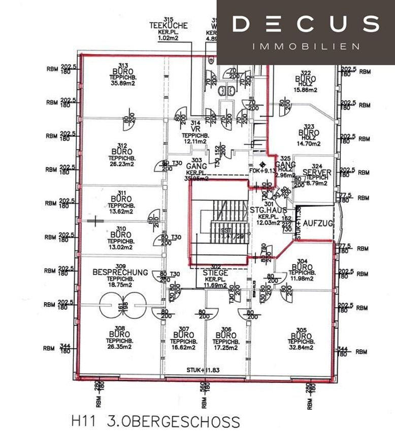 - 3.OG: ca. 276,67 (Miete: € 6.606,89/Monat/inkl. BK und Ust.)