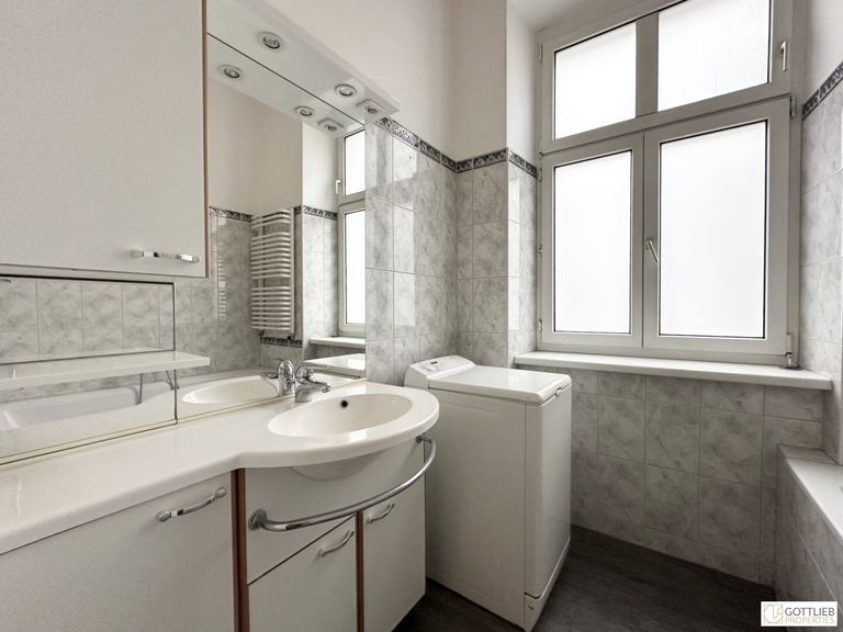 + Wannenbad mit Waschbecken, Handtuchwärmer und Waschmaschine