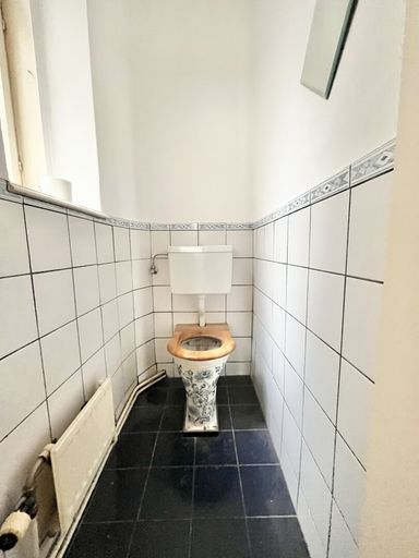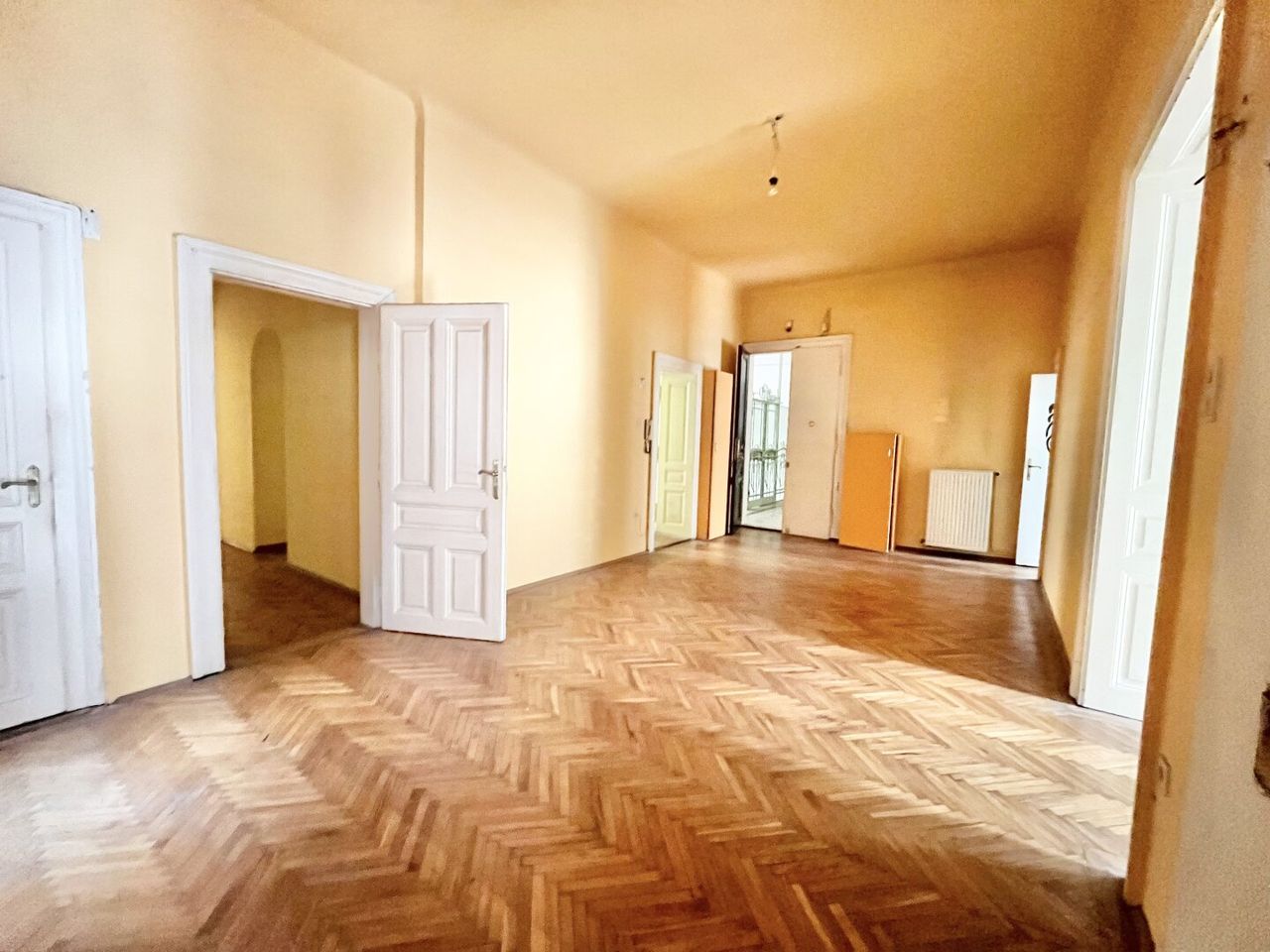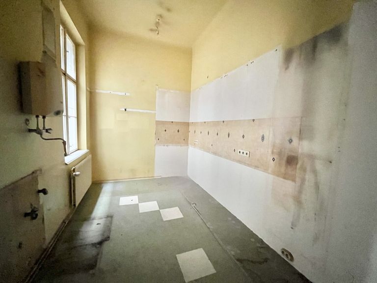 Die Fläche wurde zuvor als Wohnung genutzt und ist in einem sanierungsbedürftigen Zustand, der gleichzeitig eine flexible und individuelle Nutzung ermöglicht. Hochwertiger Parkettboden, doppelflügelige Türen und originale Stuckdecken bilden eine solide Grundlage für die Umgestaltung zu modernen Büroarbeitsbereichen.
