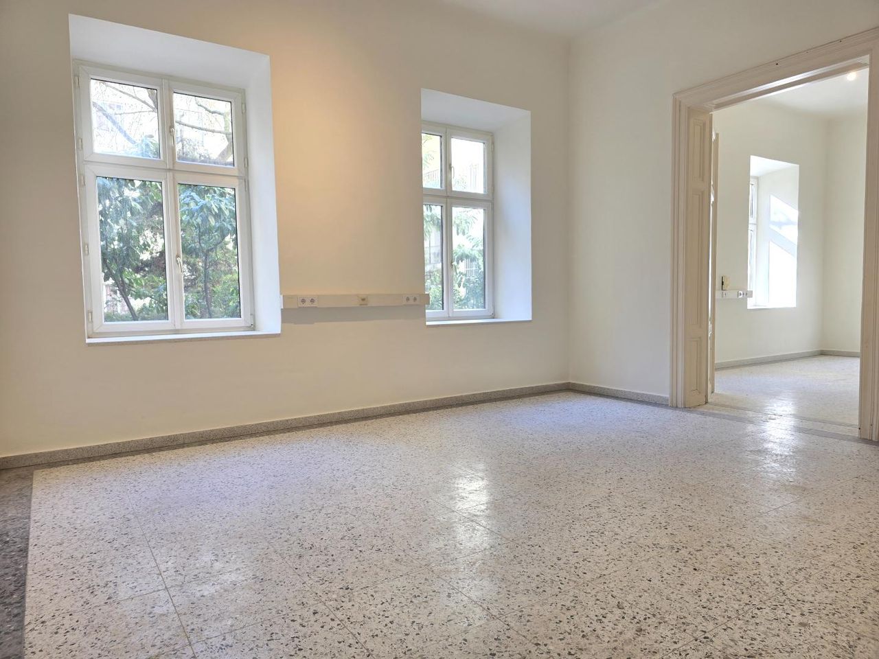 Dieses herrliche, sehr großzügige Altbaubüro befindet sich komplett hofseitig im EG einer sehr gepflegten Altbauliegenschaft und besticht durch ihren repräsentativen Charakter und die hervorragende Lage. Dieses Büro besteht aus zwei sehr großen Büroräumen, getrennt begehbar, einem kleineren Zimmer, einer möblierten Teeküche, einem Sanitärbereich mit Dusche, einer separaten Toilette, sowie einem zentralen Vorraum. Highlight ist der kleine Außenbereich im Innenhof.