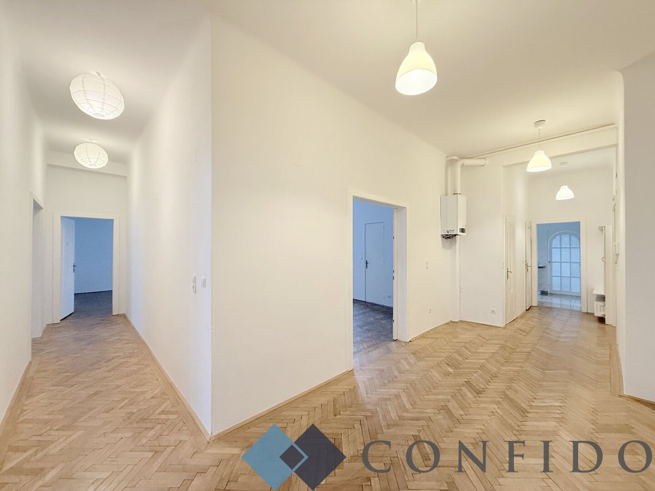 Zur befristeten Vermietung gelangt dieses großzügige, ca. 190m² große Büro in großartige Lage -unmittelbar beim Alten AKH. Es liegt im 3. Liftstock eines sehr gepflegten Hauses. Wunderschöne Parkettböden, stilgerechte Doppelflügeltüren, grandiose Raumhöhen - hier werden sämtliche altbautypischen Kriterien erfüllt. Die Immobilie verfügt über 5 Zimmer, die eine Größe zwischen 20m² und 30m² haben -alle sind separat zu betreten. Neben der vollausgestatteten Küche ist noch ein Essbereich mit Balkon. Im größeren Badezimmer befindet sich eine Badewanne und eine Toilette - im kleineren Badezimmer ist eine Toilette mit einer Dusche. Der großzügige Vorraum mit genügend Platz für Stauraum bzw. einem Empfangsbereich, komplettiert das attraktive Immobilienangebot.