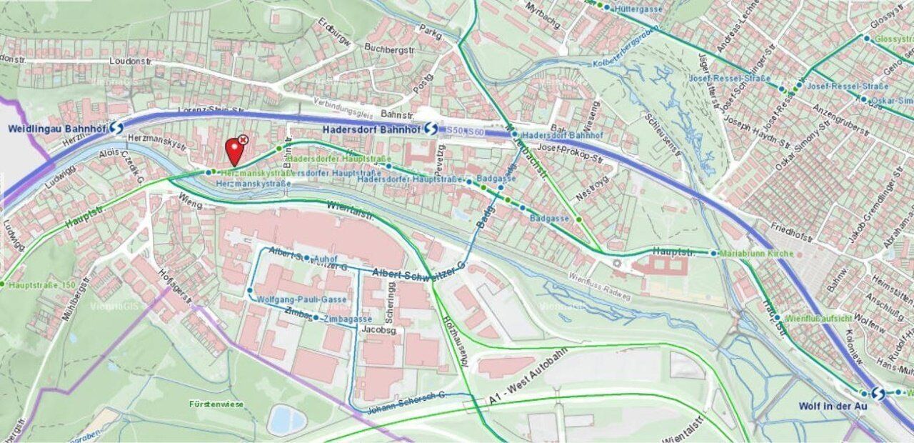 Die öffentliche Verkehrsanbindung ist ausgezeichnet, in wenigen Gehminuten ist die Schnellbahnstation Weidlingau erreichbar, die Buslinien 50A und 447 sind vor der Türe vorzufinden. Das Auhofcenter ist auch zu Fuß in Kürze erreichbar.
