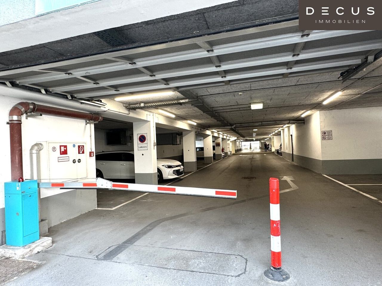 Ein ebenerdiges, bewirtschaftetes Parkdeck und Tiefgaragenabstellplätze stehen für Mieter und Besucher zur Verfügung.