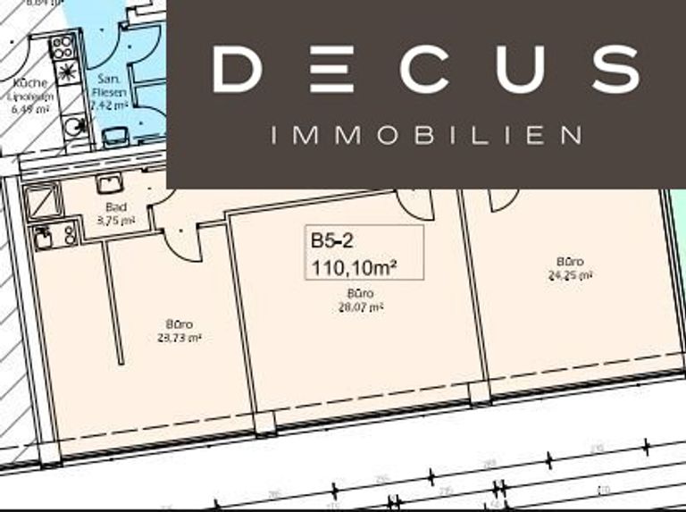 - ca. 110 m² Büro | 5. Stock | 2 Räume, 1 Besprechungs-/Sozialraum | Gesamtmiete: € 1.770,41/Monat/inkl. BK und Ust.